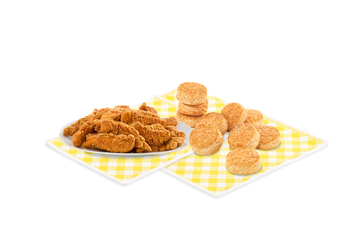 Twelve pieces of our juicy, boneless tenderloin filets seasoned to perfection and served with four scratch-made buttermilk biscuits.