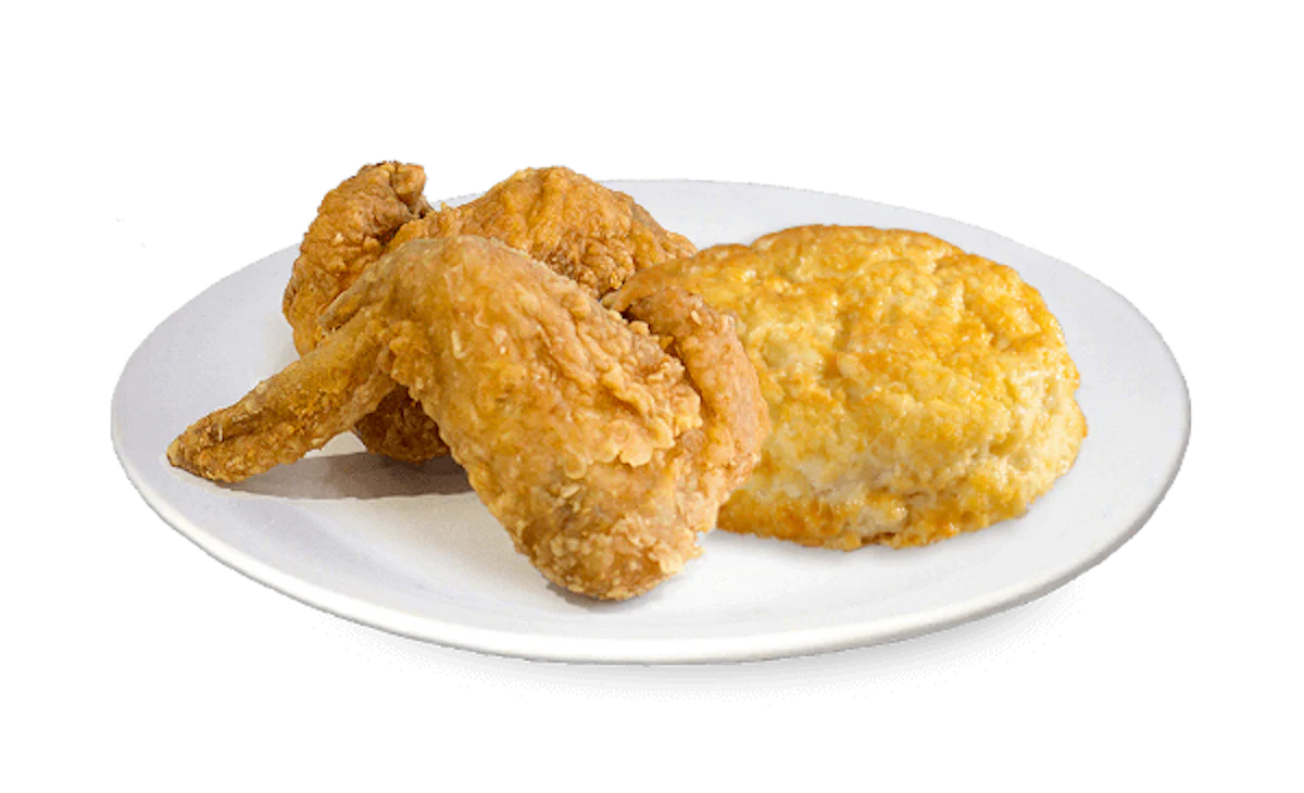 Juicy, golden-fried wings served up with a made-from-scratch biscuit.