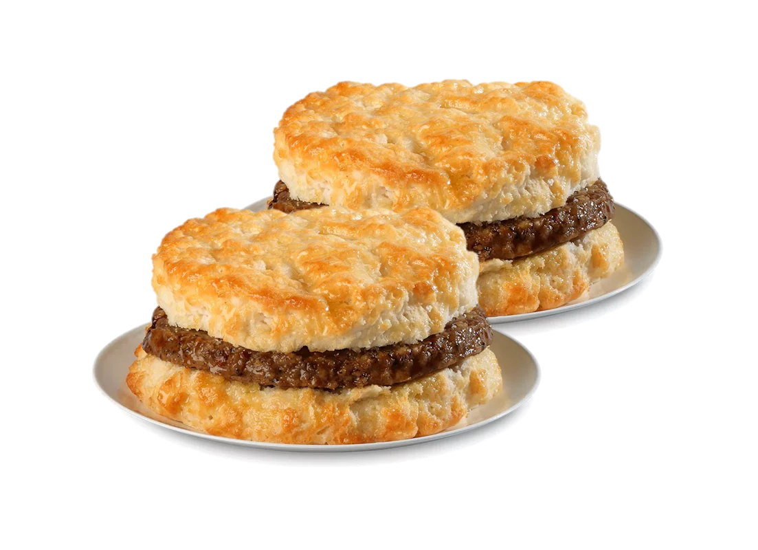 Two juicy, perfectly seasoned sausage patties on a scratch-made buttermilk biscuit.