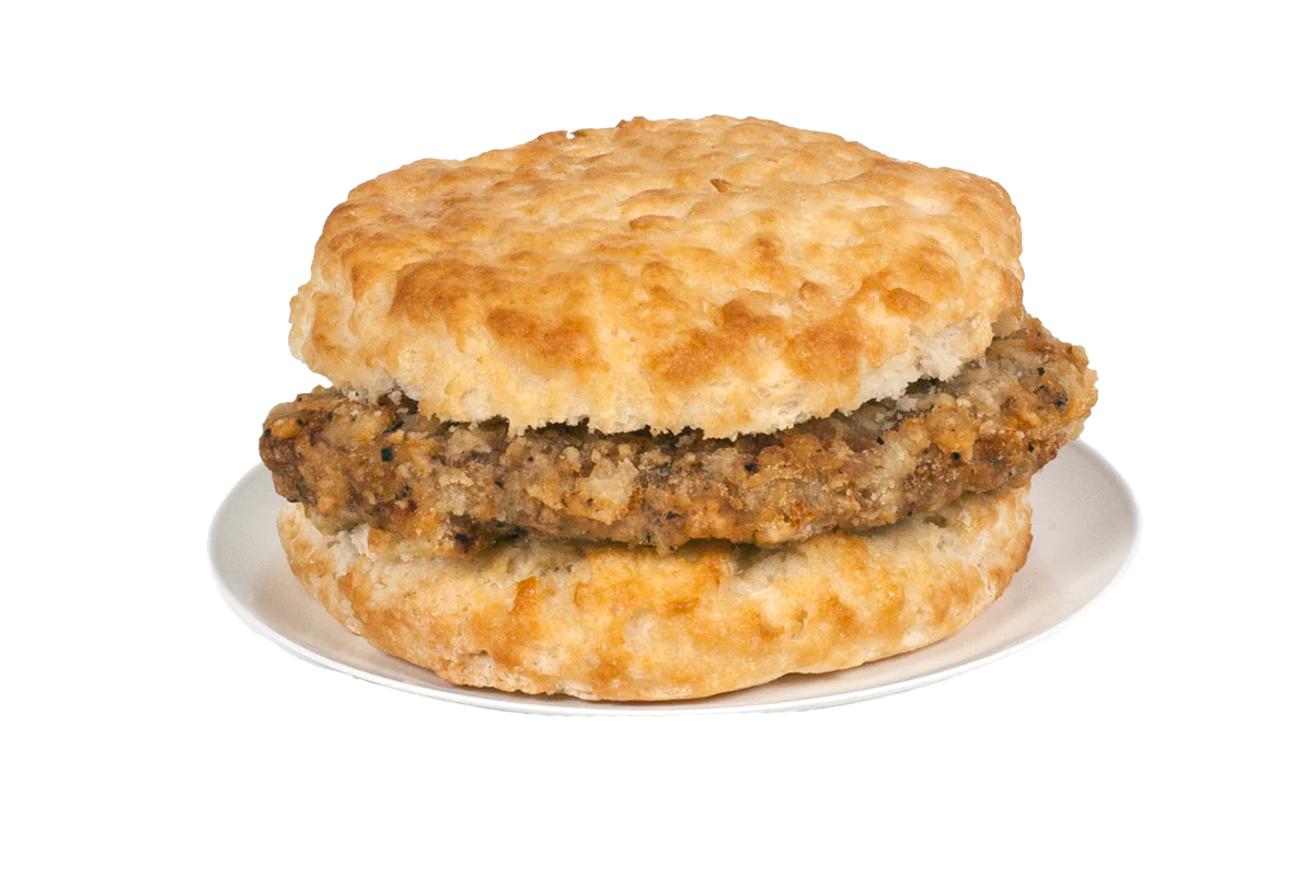 A juicy, perfectly seasoned sausage patty on a scratch-made buttermilk biscuit.