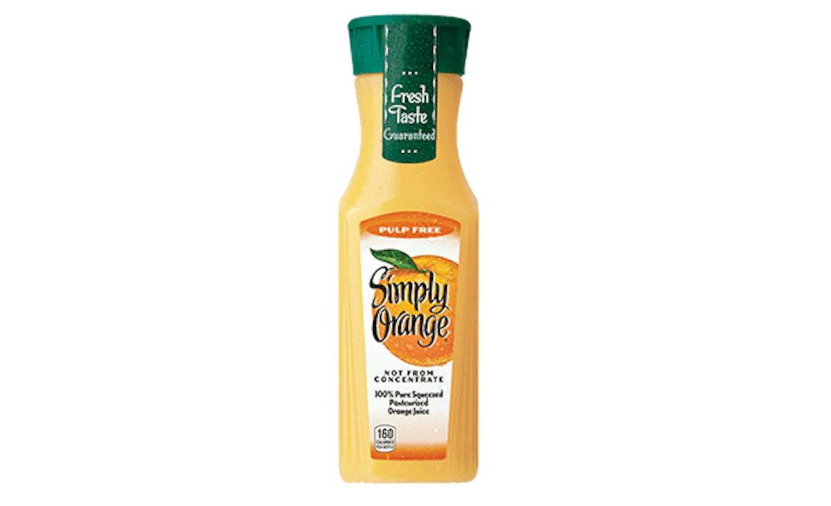 100% pure squeezed pasteurized orange juice, served in an 11.5oz bottle.